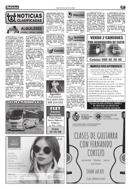 por día. Celular 097 302 mensaje. Nueva Palmi- rio.- (5-8)