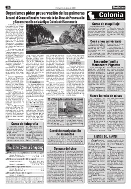 este tramo es un testimo- de la nueva ruta, que elu- convirtiendo al R. ferrugi- una plaga de picudo Este domingo 17 menores de 8 sin car-