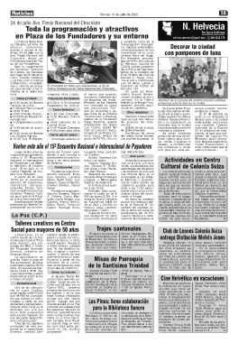 14:30 Edelveys y su Gru- 14:00 Cantores de la Pérez Scremini, quesos de puestos de arte- pio y la organización se elaborando pompones