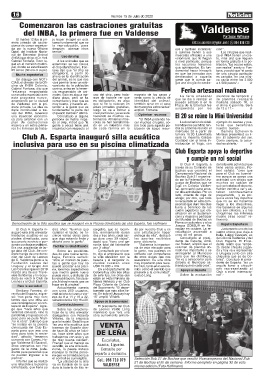 piscina climatizada, para que siga estando linda y ga dura unos 30 viajes", los aportes recibidos Consultado el presi- de Colonia Valdense y del