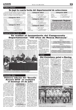 siguientes resultados en todas las categorías: Carmelo ....................... 3 Juan Lacaze ................... 5 Carmelo ....................... 4 Juan Lacaze ................... 0