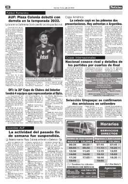 programada para el sába- 0 -Defensor Sporting 0 5 - Plaza Colonia 0