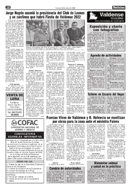 prevista aún. autoridades. el Club ya tiene en su ca- Leones también pero sario Club Valdense. dros.