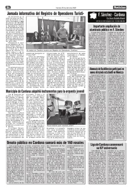 dencia de Soriano Lic. Se realizó en Cardona reunión por Registro de Operadores Turísticos luminarias de 180 watts, colocación de siete nue-