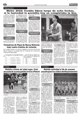 U12 ............ Trouville 0 – Plaza 6 Miramar, en el triunfador Hoy continuaría la ac- ñaga tienen 13 unidades,
