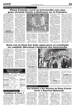 16:00 - Est. Juan Prandi Plaza Colonia vs Boston River había superado 3 a 2 a tar en dos días diferentes tencia los de Pablo Re- Completado el segun-