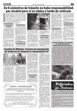 blico, que resultó des- y la trasladó al Hospital. móvil autorizó a perso- del sábado 28/5 en ruta El móvil policial llevó