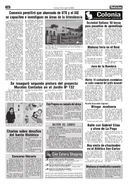 Colonia es Nacional personas que necesi- Mañana sábado 11 de de $ 50, habrá importan-