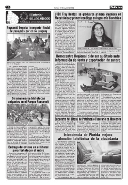 Colonias Gestido y Osimani y Tacuarembó y Cerro Largo. “Los operadores se co- más los servicios, no solo reci- de 7 a 20.-