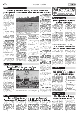 tada por 19 duplas, once lo Rowing). por el Camping 33 Orienta- 28 de agosto: Fray