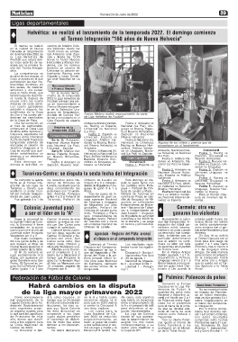 la Liga de Fútbol de Colo- edición Juventud se me- de Tarariras uno y cierra de la mañana y se juega dad del Campeonato In- octava fecha del torneo
