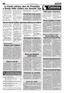 UdelaR aprobó la reso- Pediatría, nuestro refe- pintura, miércoles de 4522 4974.- nen un costo de $ 50. El campeonato se
