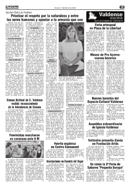 quien ostenta el título de lonia en el certamen na- Nora recordó que se tra- de agua, tierra, flora, fau- de 14:00 a 18:00, los vier- 14:00 a 18:00.-