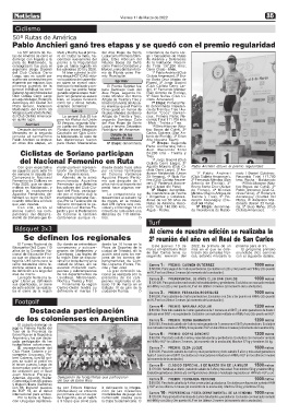 se aguarda para este fin tación de distintos Clu- por razones familiares clista Cerro Largo), 3º An-