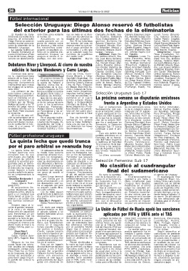 del Uruguay en la tempo- presentantes de la Aso- no (Brasil), Deportivo Tá- cional, Brasil), Leandro (Flamengo, Brasil), Fa- México).