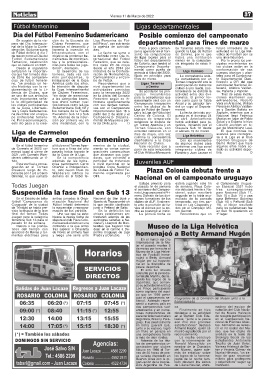 po profesional femeni- 16. Además de la incur- Campeonato Departa- Centro de Colonia. El puesta es el domingo 24 Nacional llegó Federico