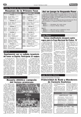 sede del Club Atlético ventud (Colonia), Mara- to Morel, la primera fase mente series de elimina- (Nueva Helvecia) y Nacio- dos series de 5 y 6 equi-