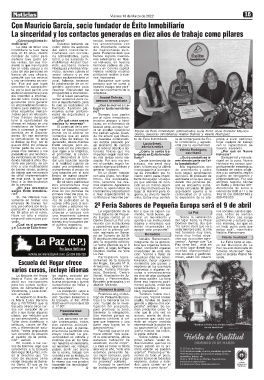 ces, pero ahora con la ca- tor urbano y estamos ne- 2ª Feria Sabores de Pequeña Europa será el 9 de abril