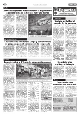 caba «este año comen- tividades que se realizan 4to puesto Candela Gey- las carreras, a cada cate- .......................................... Renzo Saporiti y Gastón Cuestas