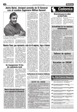 El Ing. Agr. Milton Gonnet fue el entusiasta construc- proponente del proyecto al fútbol profesional. Ade- para comienzo de la