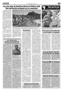 homenaje a la institución: Colonia. nómico que se quería ins- lonia. Campeón departa- Tarariras tendrá su Bachi- tes. La escuela local las