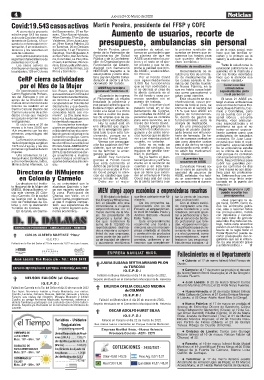 Juan Lacaze: Don Bosco s/n - Tel.: 4586 3419 Colonia: el 17 de marzo falleció Mirel Faraco de