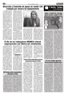 “...nos volvemos a encon- Entrevistado el presi- sultado respecto a plazos y unos 25 puestos sobre claro y el directorio pueda lo que habría que volver