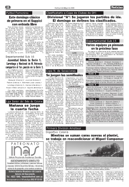 Colonia se completó con La Española y El Epio cero del Sur frente al sentantes del departa- varios los clubes que tienen un pie en los Octavos de