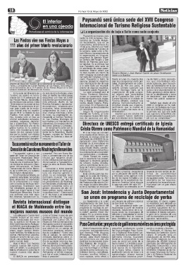 Piedras, se conmemora el pri- dicionalistas, espectáculos tural Gobbi se llevará adelante lamentaron que la ciudad de zado en 12 ciudades de 5 paí-