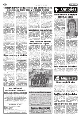 desde hace más de cua- autor. letras de canciones, poe- parco y corto en elogios, ción del Liceo de Ombúes