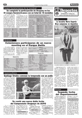 la ciudad de Rivera se lonienses Mauricio Ge- múdez, 2º Bruno Rodrí- de Nueva Palmira y en la mento de Colonia" que