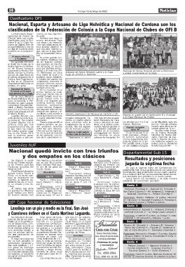 hoy en día. Desde 2010 tar ahí lo que se buscará de Nacional de Cardona consiguiendo los tricolo- En la Divisional B no no de Nueva Helvecia,