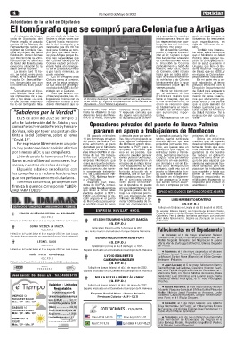 ............................................................................. Unidad Indexada (U.I.) Dólar 40,35 / 42,75 Peso Arg. 0,07 / 0,37 Tarariras: el 5 de mayo falleció Gumersinda