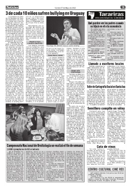 vados por el bullying. Aun- Una vez es normal, pero dido. Se la pueden haber mar parte de la feria Uru- interés en la propuesta la