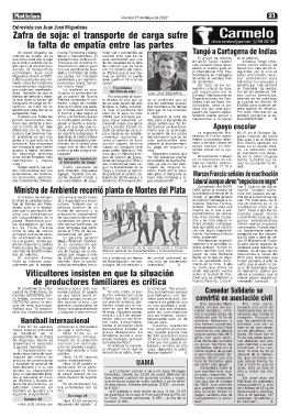 acopiadores, las termina- agregó: “cuando uno es- do que hace el camión, sa- ción para el transporte se Marcos Francia: señales de reactivación