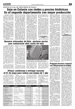 Nueva Helvecia .......... Soc. Fomento................... 5ª, 17 ª y 18ª .......31/5 - 1º y 2/06 ...... 8:30 a 13:30 mínimo nacional por 30 nas para que cuando lle-
