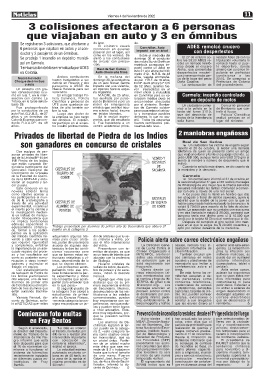 Choque de ómnibus fueron trasladados a sa- domingo 30, la conductora do por Y.R.F. de 19 años, Doña Catalina. Prefectura de Colonia