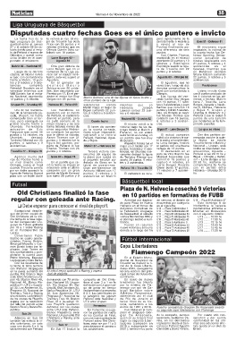 actuación de Eric cinco segundos Hebrai- zo la cuarta jornada, rrotas frente a Malvín y Biguá 87 – Larre Borges 74 Lo que se viene