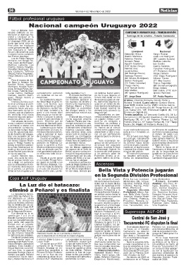 Edgar Martínez convirtie- División Amateur se en- so que se jugaba al cierre les del fútbol de AUF: peón de la Copa Nacional se consumó tras quedar-