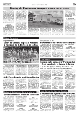 AUF: Plaza Colonia perdió con Racing a semifinales en la Divi- Divisional B (Tarariras) 0 - Indepen-