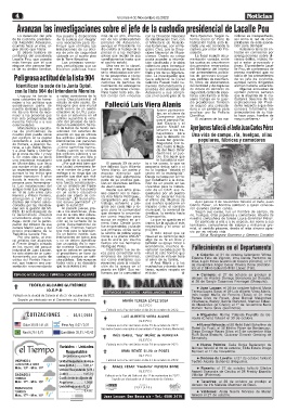 en los muros del parque da nuestra Constitución, Rodríguez Pérez. económico, muchos le- Fallecimientos en el Departamento