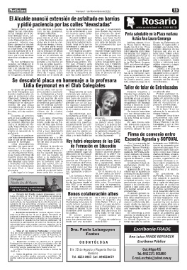 bien» destacó el alcalde cluirán en tiempo y forma. brado, tarea en la que se las consecuencias que la Plaza Benito Herosa Rosario. El Liceo AUIC y