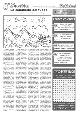 –Amigo, tú no pa- ta la montaña de fue- las llamas, pudo ha- hombre tiene fuego,