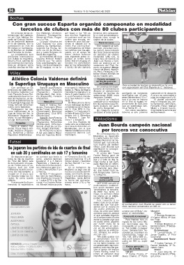 vecia además de en la ciu- nio (Paysandú), Huracán 4, Juan Ferreira 3, Pelota- Ambrocio Camejo. peón (Montevideo) 15 a 7 jugar en categorías A y B.