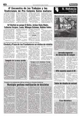 te virgen para comenzar a misión Pro Colonia Suiza En esta edición se cas de Suiza y la región.-