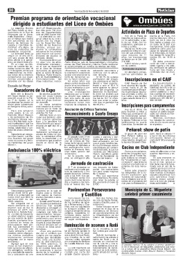 En el Liceo de Om- «Orientando orientales», ciones del Área Industrial y Marina Flores recibieron Habrá música y servi- carné del niño o adoles-