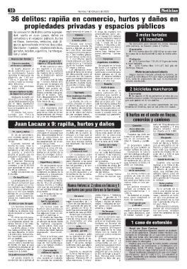 borado por Policía tacionamiento del Hospi- de una ventana lateral. no estaban sus pertenen- 6 hurtos en el oeste en fincas,