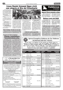 so a tales efectos el Ho- tas comunitarias y espa- secretaría de la Iglesia Evangélica Valdense de Colonia Valdense en el horario de
