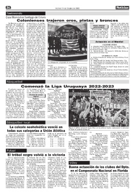 Uruguaya de Básquetbol. U19 ... Plaza 111 - Unión Atl. 44 u15......... 14:00 hs guá-Malvín; Aguada-Urun- ca. Fecha libre: Olimpia. cional-Goes; Urupan-La-