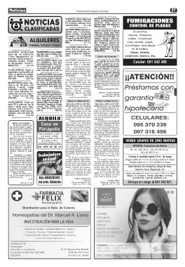 099 550 906.- (21-10) $3.000. Cels. 091 364 037 o CONTROL DE PLAGAS